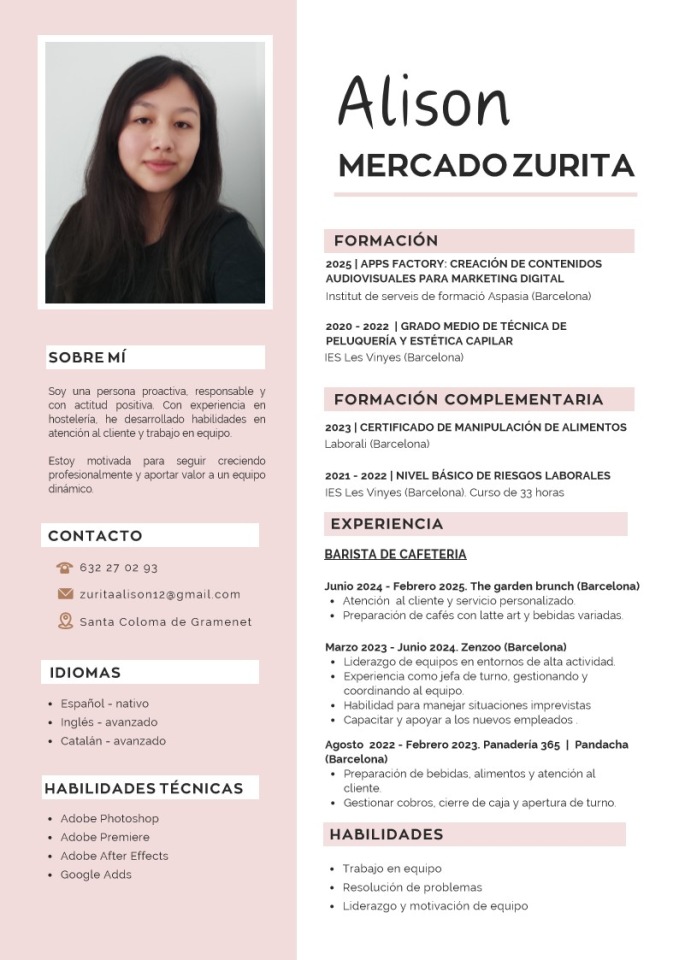 Soy estudiante de marketing digital con pasión por combinar la creatividad con la estrategia. Me interesa crear contenidos que transmitan ideas de forma clara y atractiva, aprovechando mis conocimientos en herramientas de Adobe como Photoshop, Premiere y After Effects. Me considero una persona curiosa, en constante aprendizaje y motivada por aportar soluciones innovadoras que conecten con las personas.